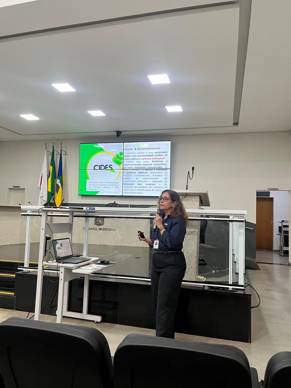 Durante sua apresentação, a diretora executiva destacou os diversos projetos executados pelo Consórcio CIDES, ressaltando a importância das ações voltadas ao fortalecimento da produção local e à estruturação do Serviço de Inspeção Municipal como ferramenta para ampliar a regularização de indústrias e agroindústrias, além de fomentar o desenvolvimento econômico regional dos municípios consorciados.